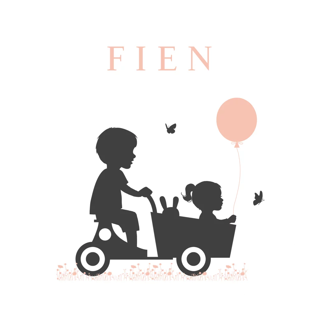 Sticker 2e kindje meisje met broertje in bakfietsje