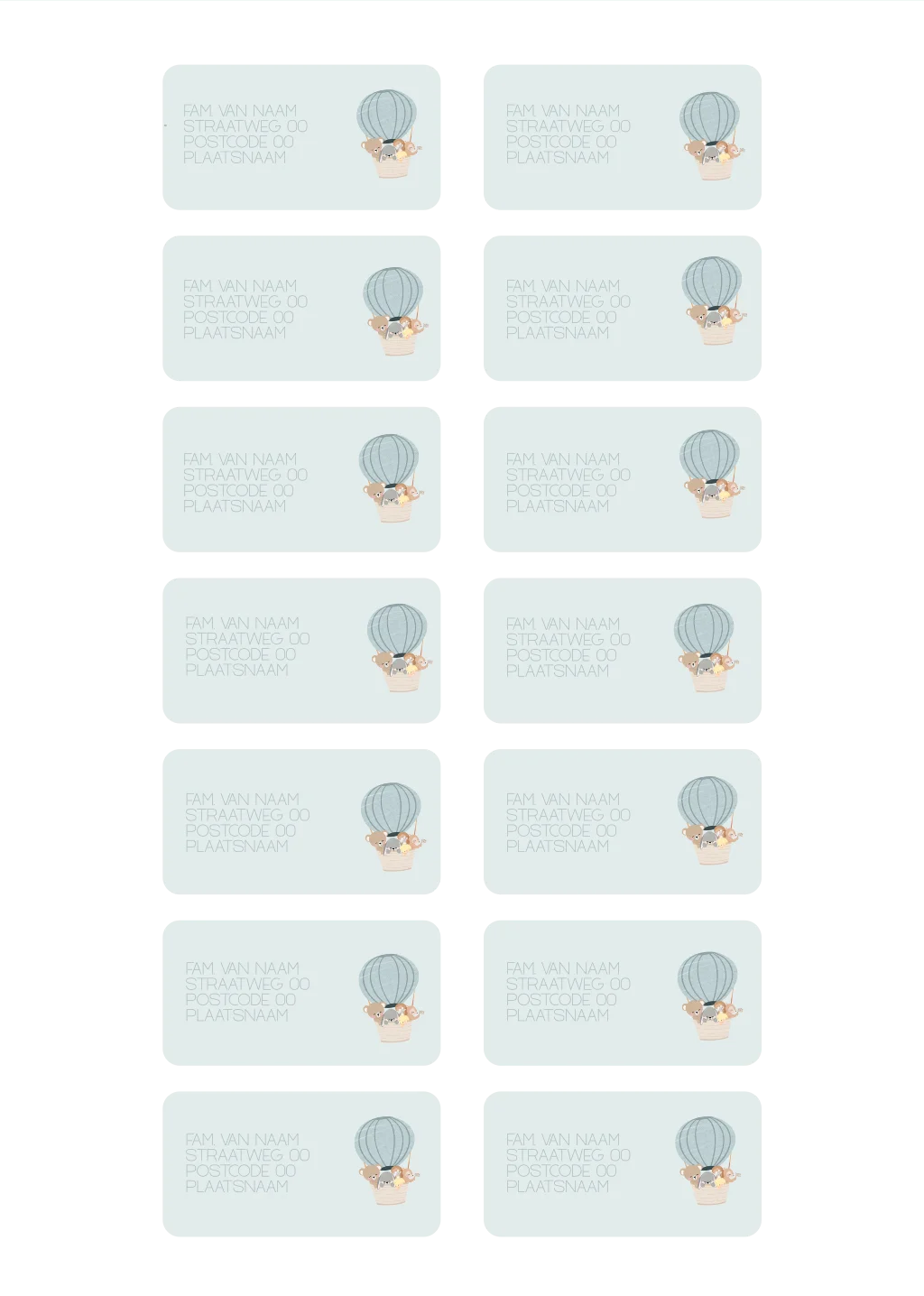 Trendy adressticker luchtballon vergrijsd blauw