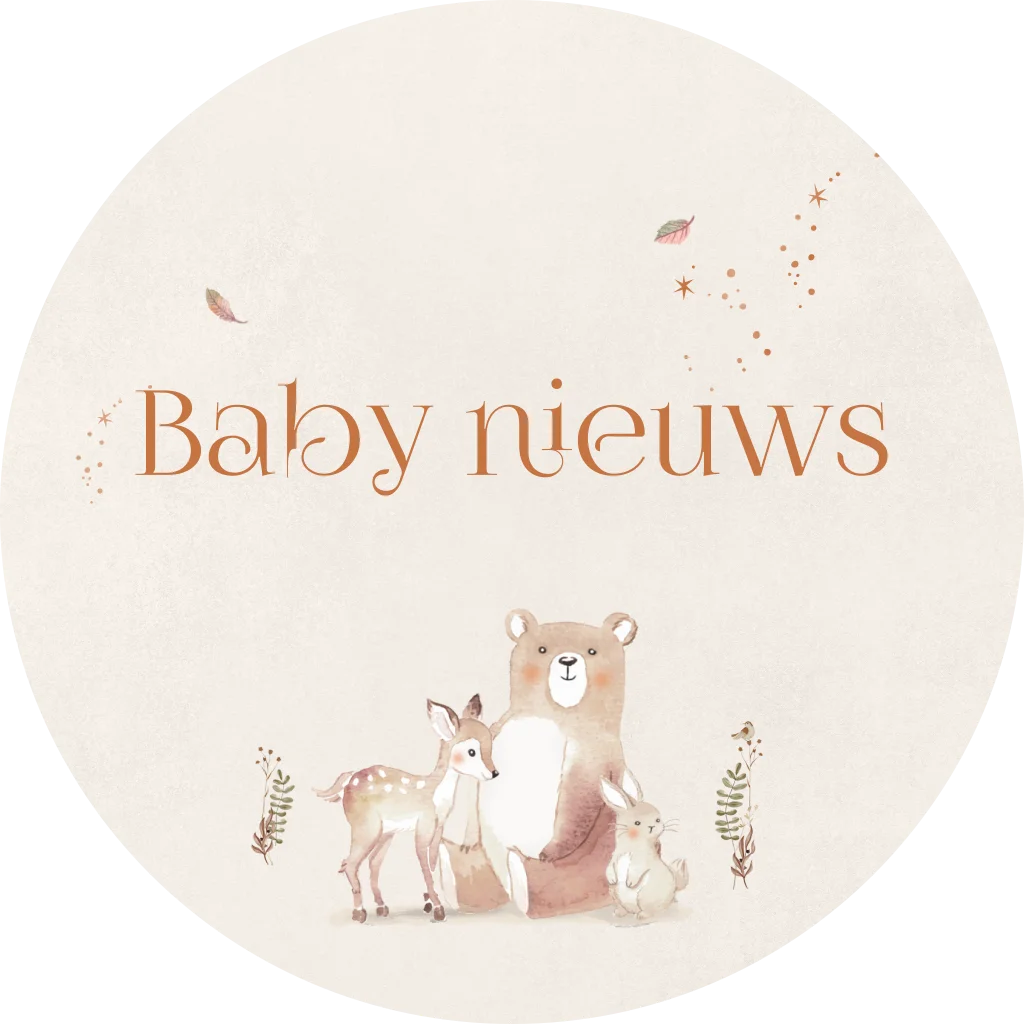 Beige sluitsticker met bosdieren. Leuk als extra aanvulling voor bij het geboortekaartje.