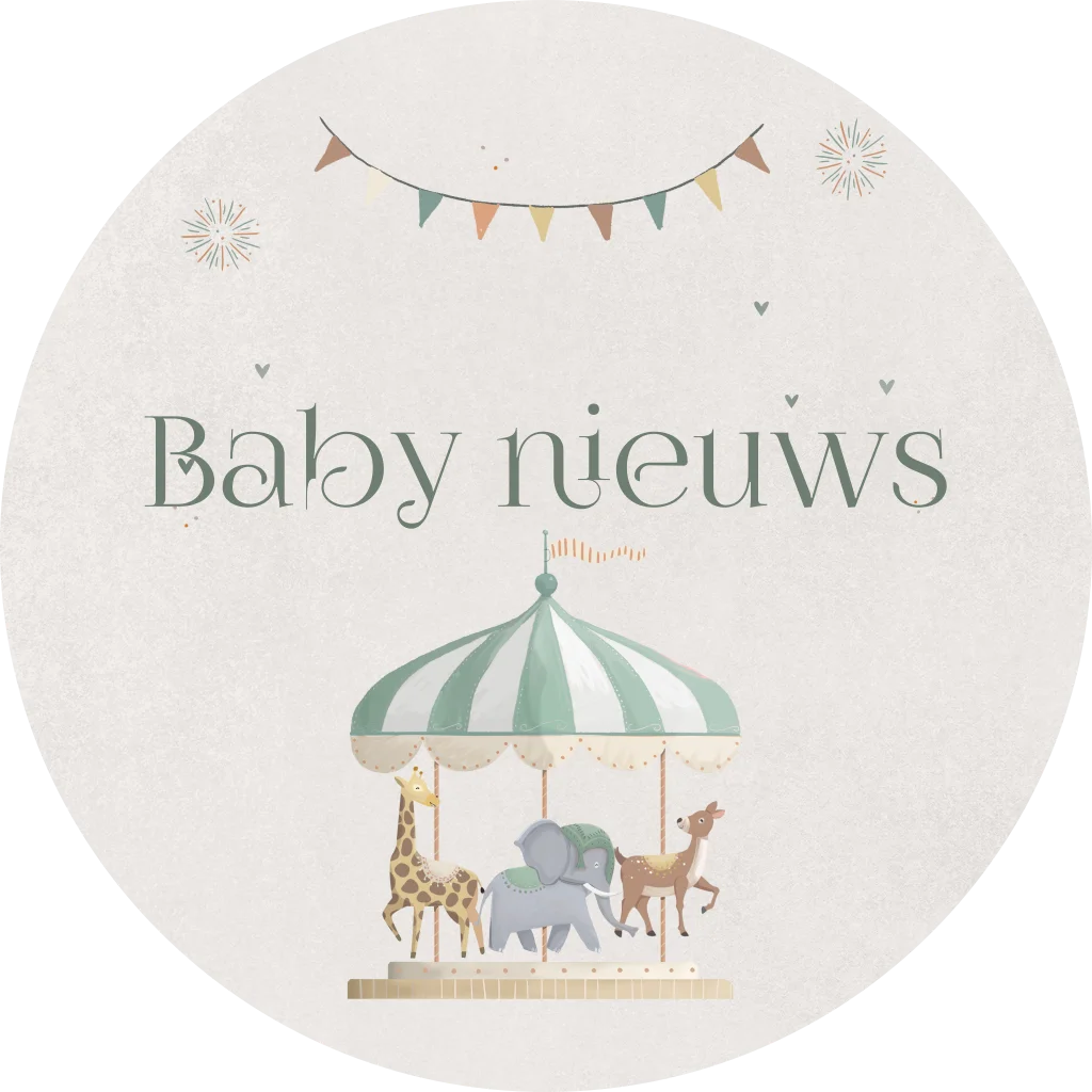 Een grijze sluitsticker met draaimolen. Is leuk als toevoeging bij het geboortekaartje.