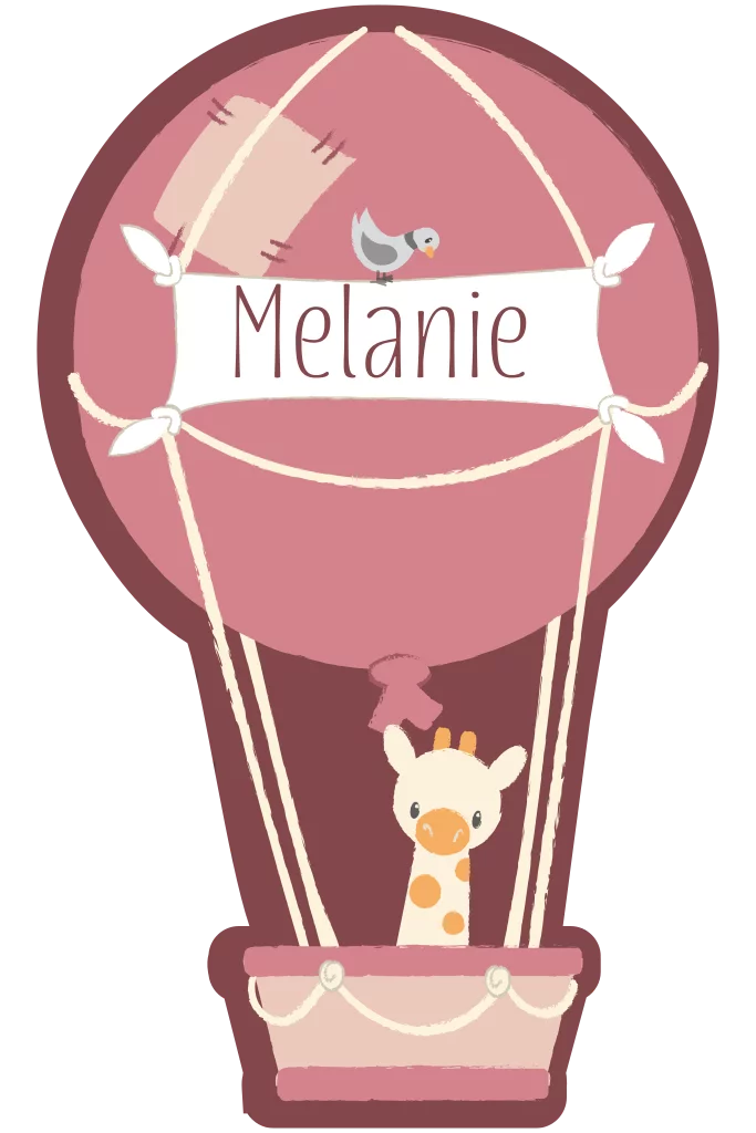 Geboortekaartje in de vorm van een luchtballon. Voor een meisje met een giraf en vogeltje. (4550)