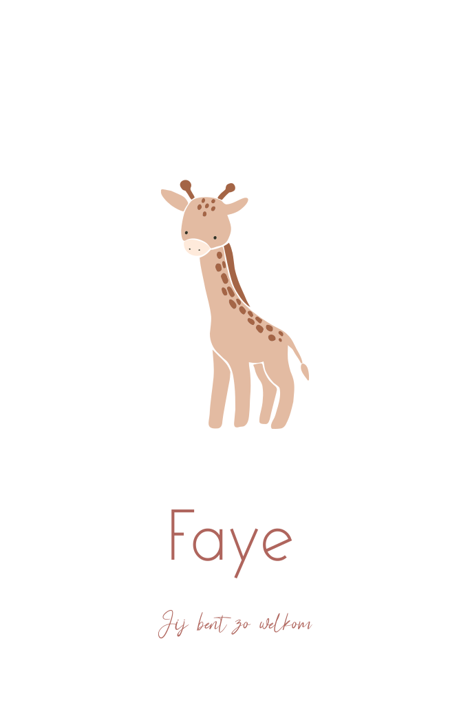 Meisjes geboortekaartje in boog vorm met lief girafje. (4266)
