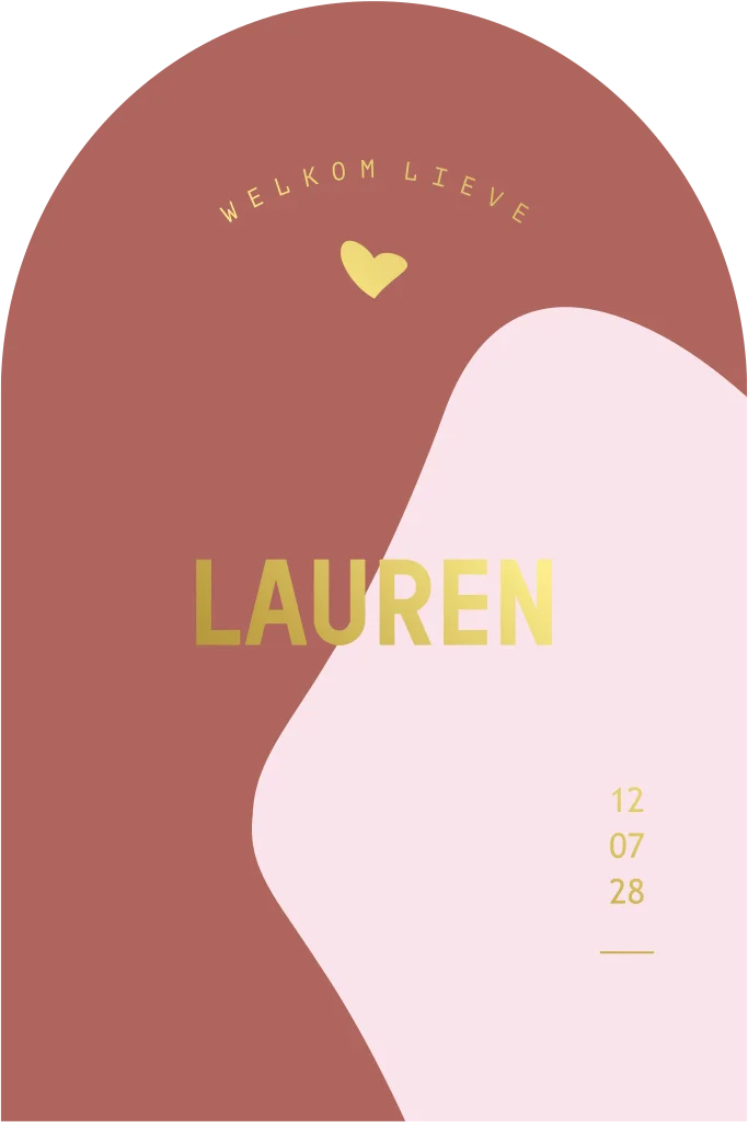 Modern geboortekaartje met roze vlakken voor een meisje. Met echt goudfoliedruk. (4353)