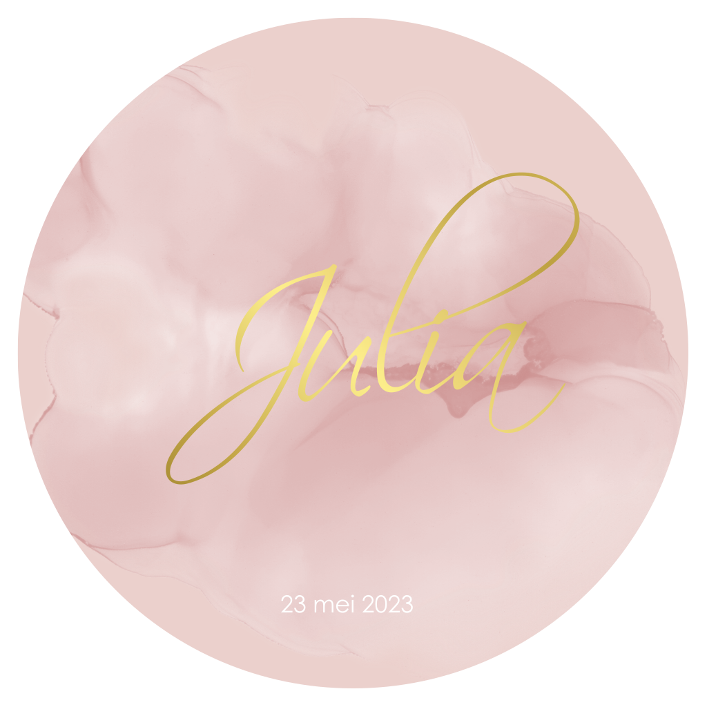 Rond geboortekaartje roze terra verf kleur met goudfolie. Pas eenvoudig de kleuren en achtergrond aan. (4192)