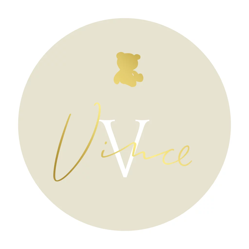 Een rond klassiek geboortekaartje voor een jongen met een beer en foliedruk.