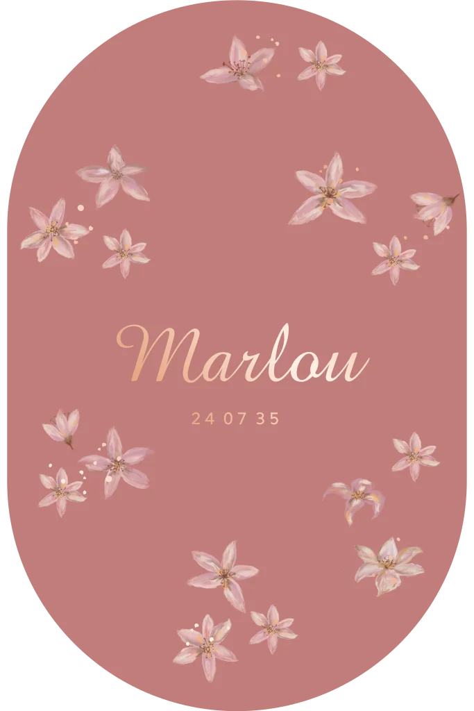 Mooi ovaal geboortekaartje rosé goudfolie en bloemen
