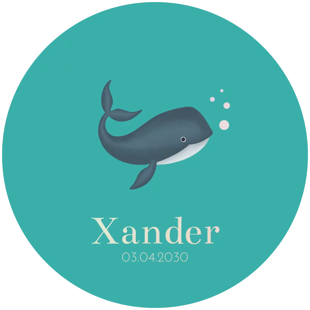 Een geboortekaartje voor een jongen. Blauw met een walvisje en rond gestanst. (4723)