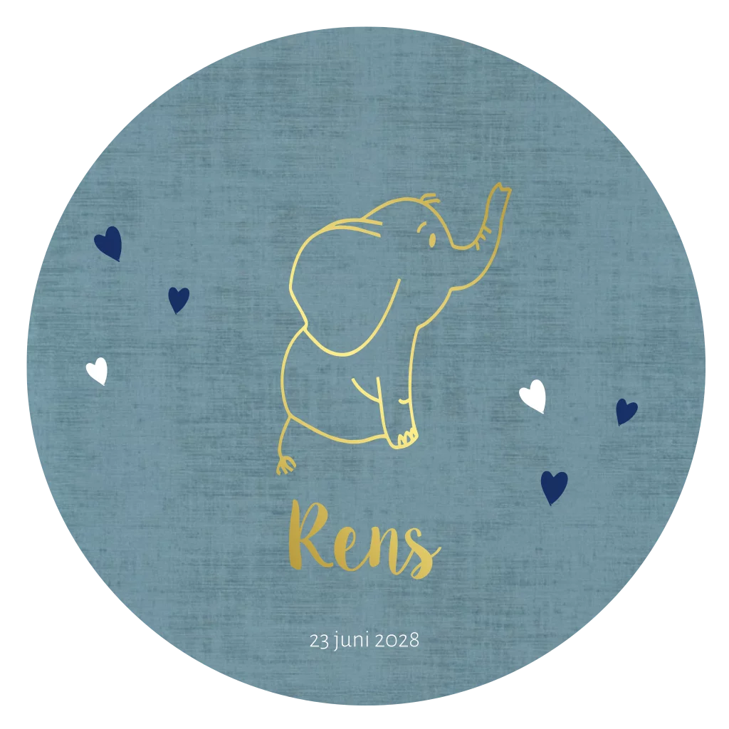 Rond geboortekaartje voor een Jongen met olifantje en hartjes