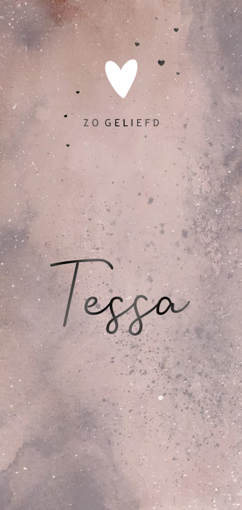 Hip geboortekaartje meisje roze waterverf en gestanst hart