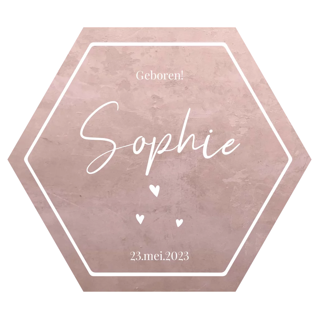 Zeshoek Hexagon geboortekaartje meisje roze beton-look De kleurtint van de achtergrond is naar wens aan te passen. (4211)