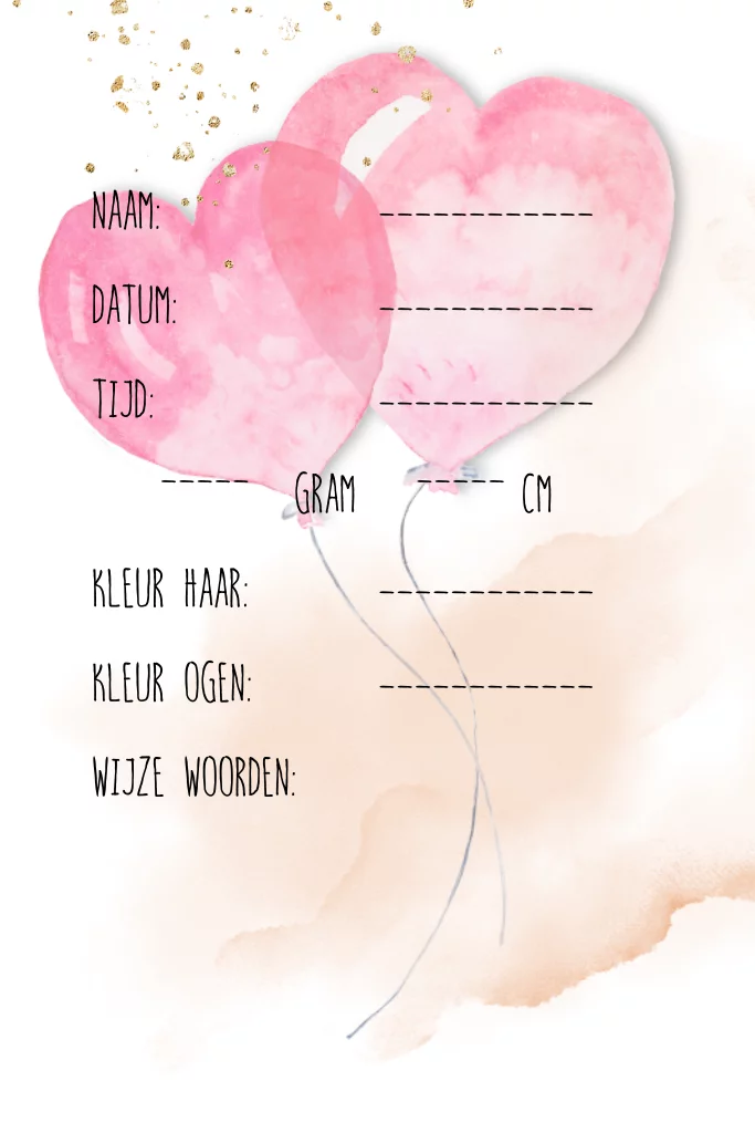 Uitnodiging voor een babyshower met roze waterverf ballonnen.