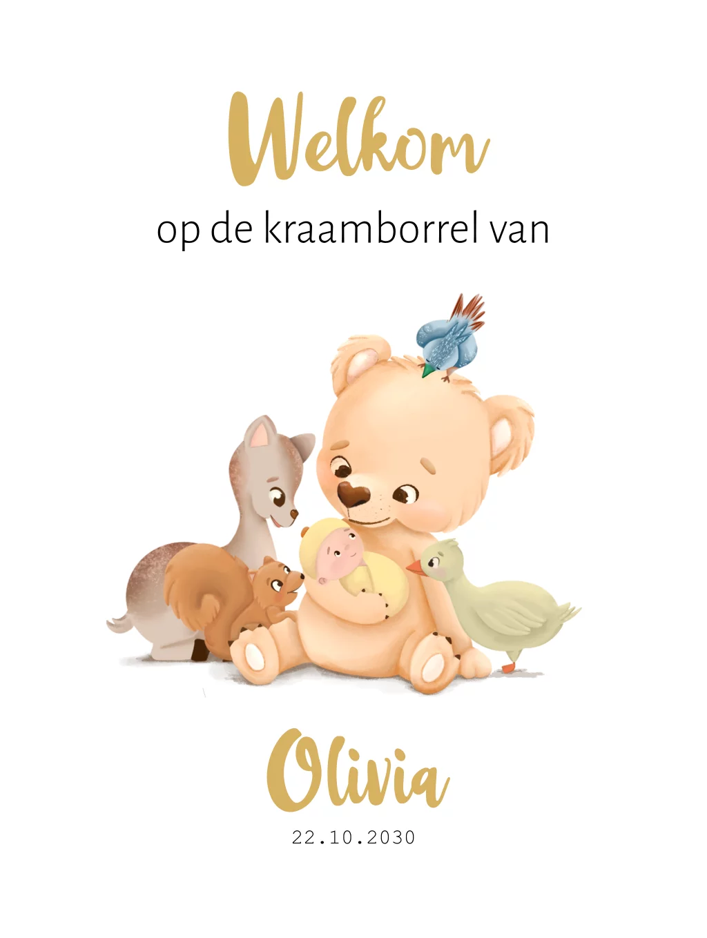 Een welkomstbord in dezelfde stijl als de rest van jouw feestdecoratie. Je kunt het ontwerp eenvoudig aanpassen in onze online editor, zodat je het bord volledig naar jouw wensen kunt maken. Het bord wordt gedrukt op 5 mm dik forex-materiaal, dat stevig en weerbestendig is en perfect past op bijvoorbeeld een schildersezel.