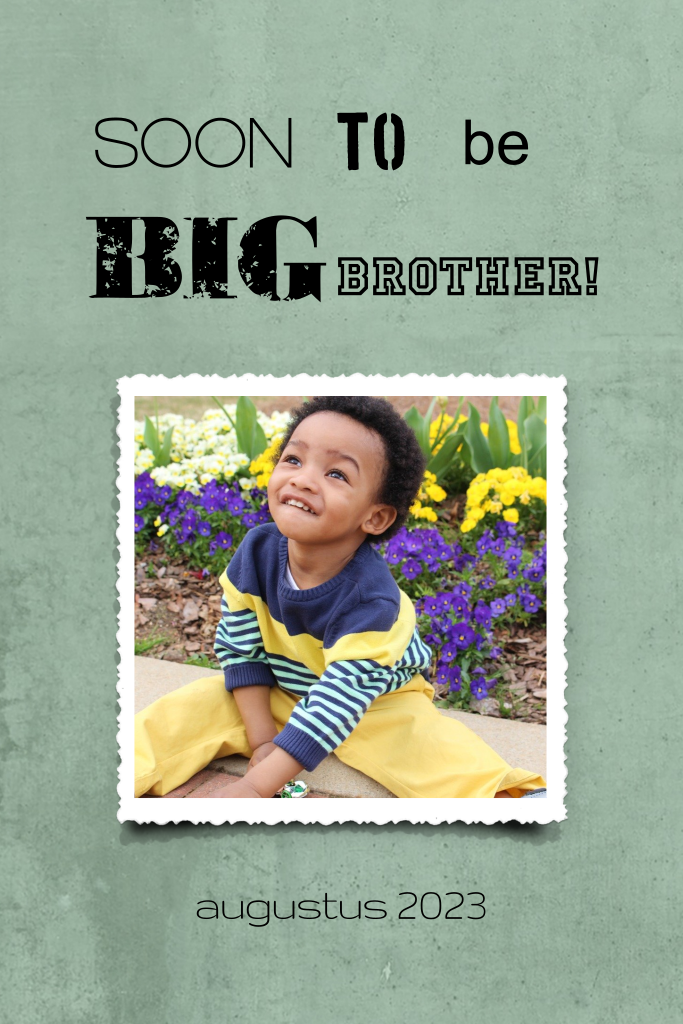 Aankondiging zwangerschap tweede kind op groen beton-look achtergrond. Soon to be Big Brother.. Met eigen foto. Grote broer (3697)