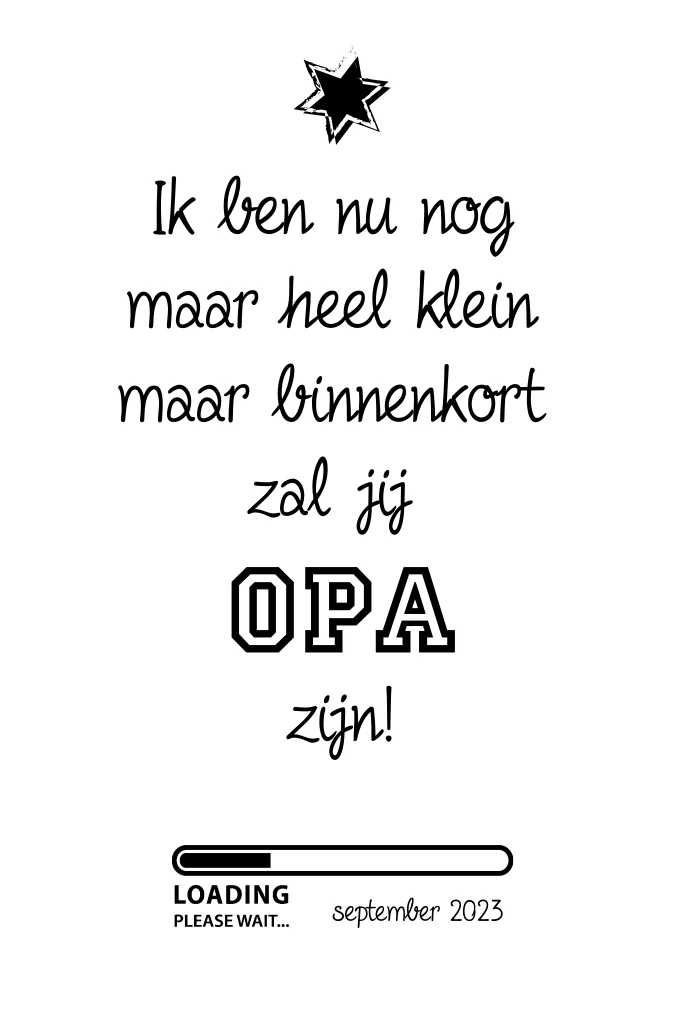 Aankondiging zwangerschap binnenkort zal jij opa zijn zwart wit. De teksten, lettertypes en kleuren zijn naar wens aan te passen! (3680)
